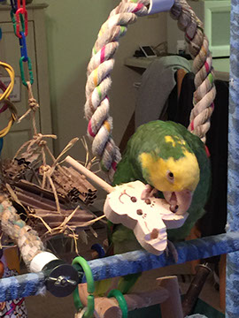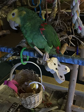 Just click below and decide how many you'd like to contribute. Your Invoice will show "Add One 10.95", and birds in need will have toys they'll love.